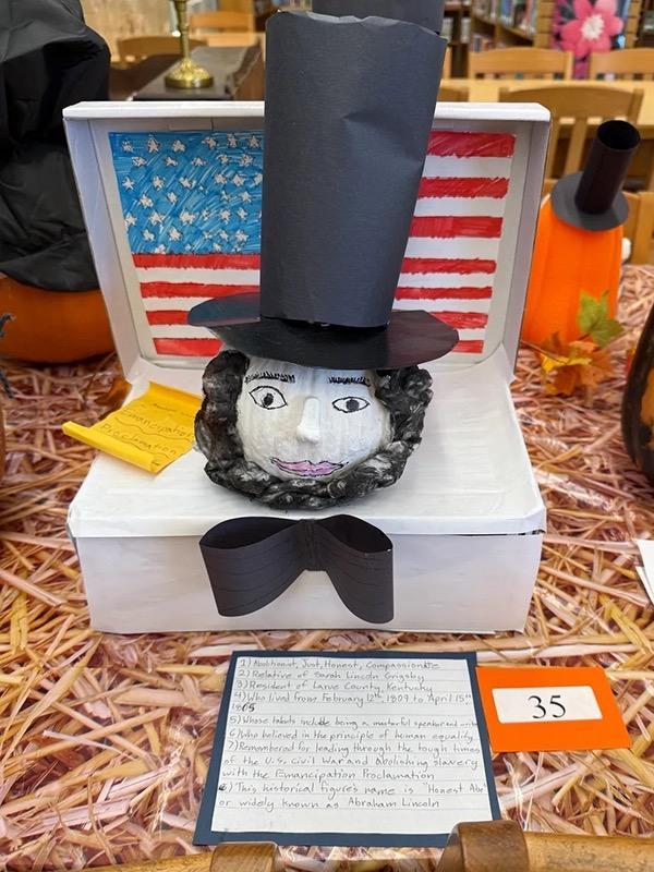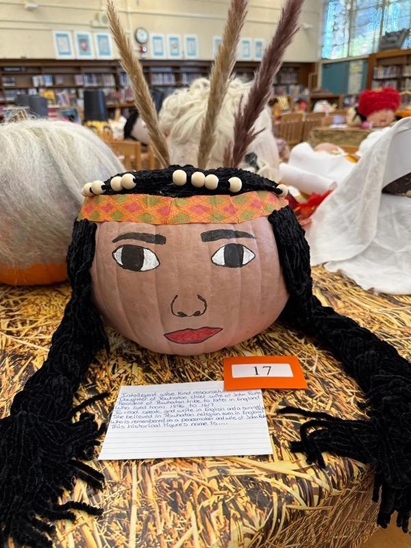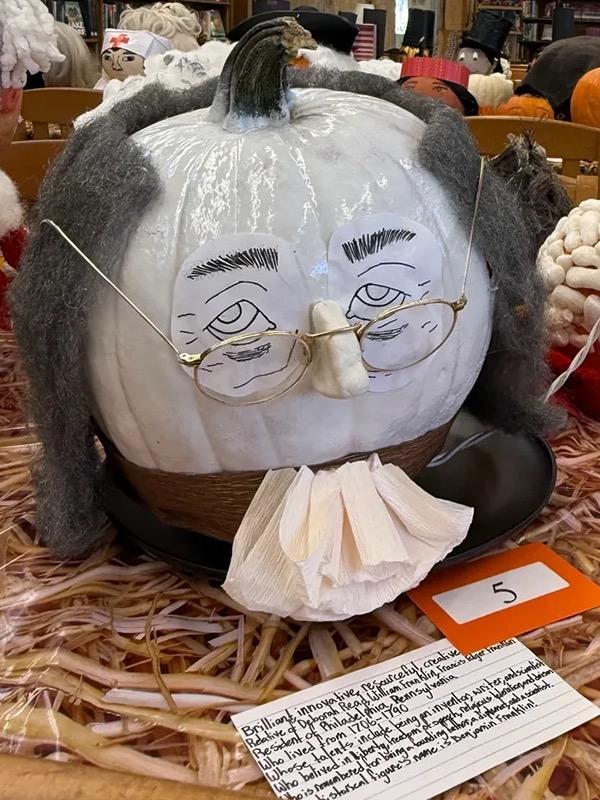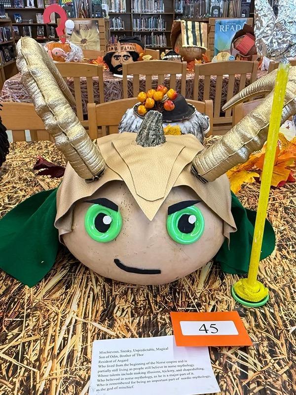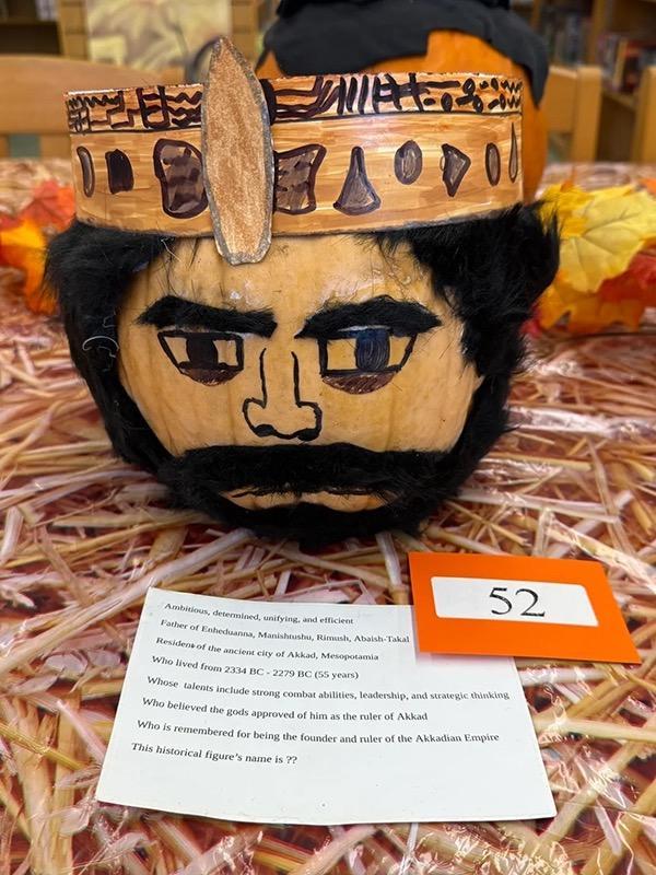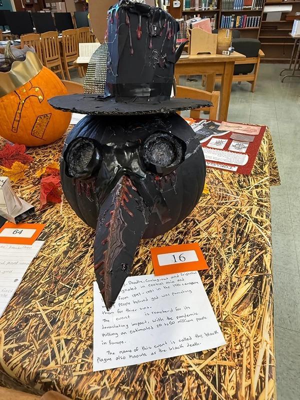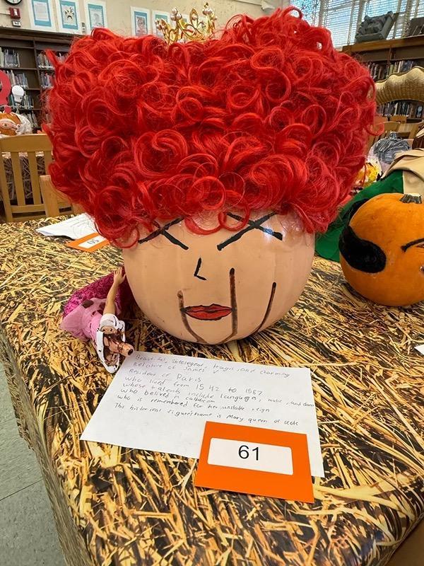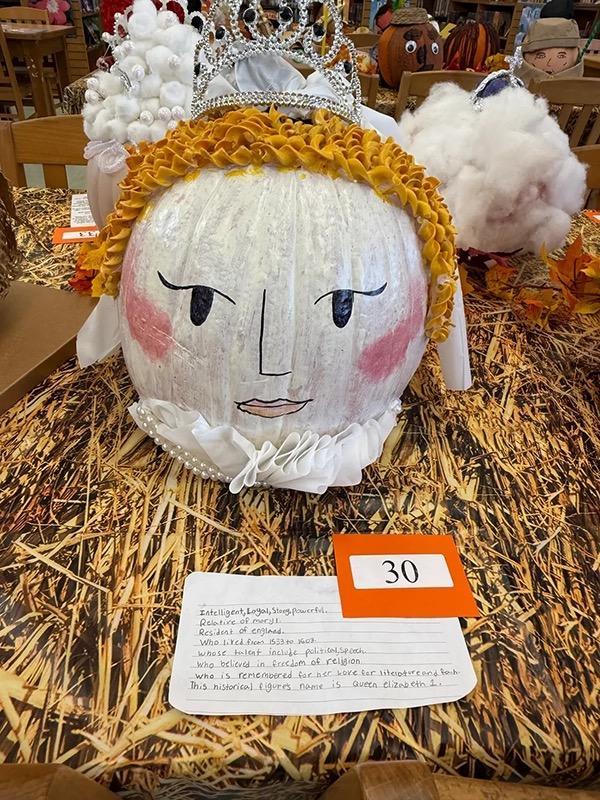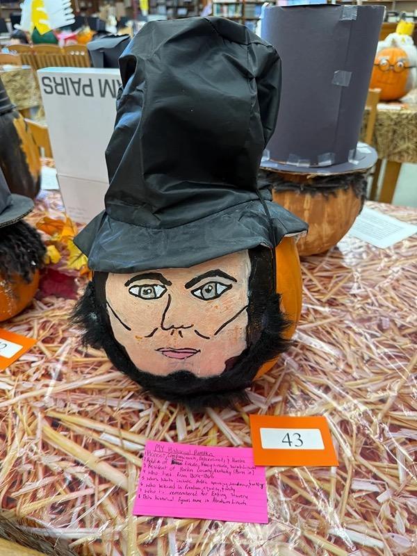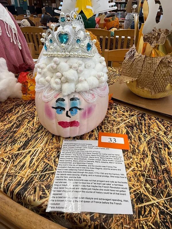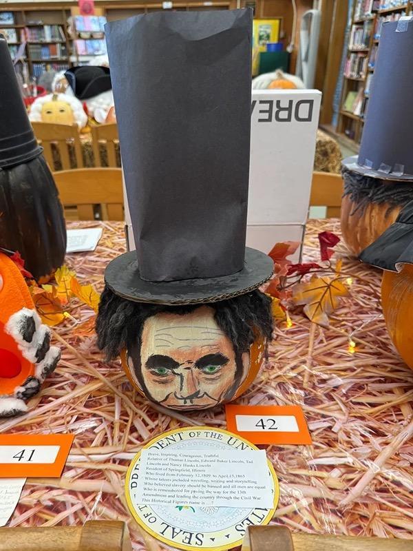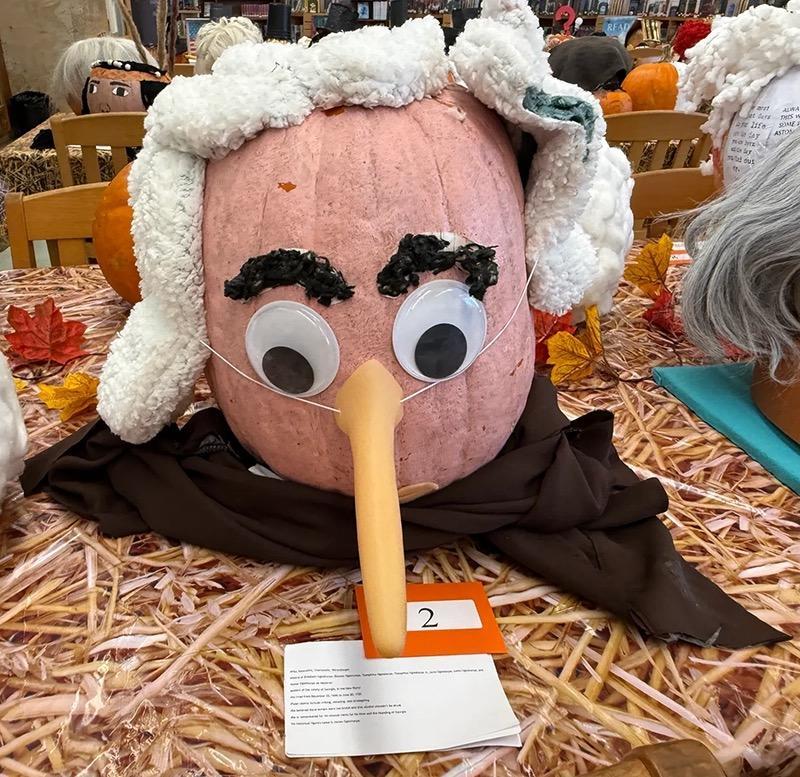 Each Fall, Students decorate pumpkins to look like historic figures on Halloween or Just before Halloween, in the Library.
